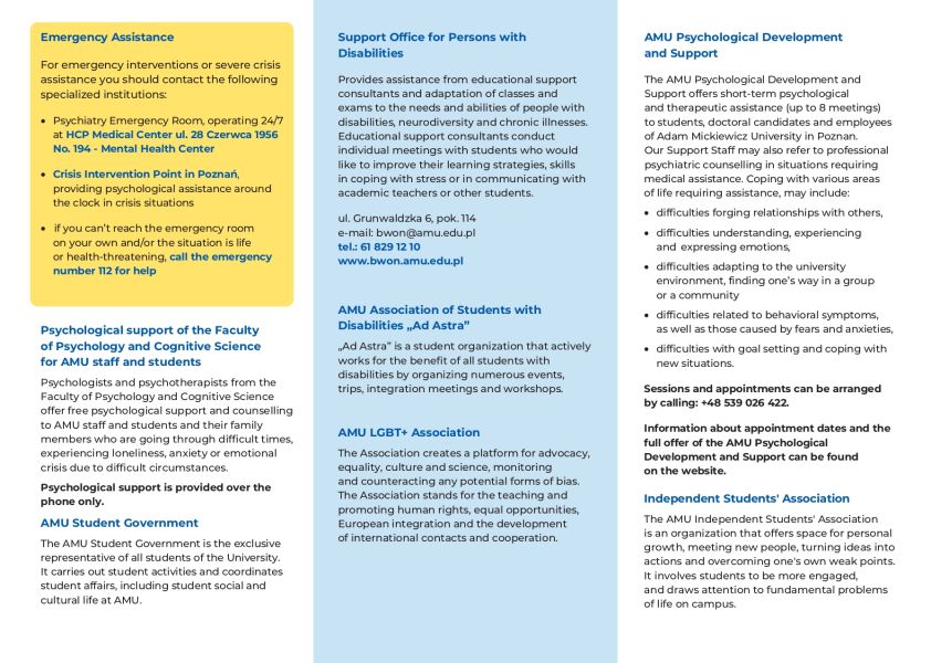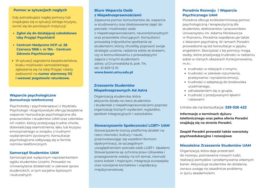 poniżej zamieszczamy ulotkę informacyjną przygotowaną przez Poradnię Rozwoju i Wsparcia Psychicznego UAM.